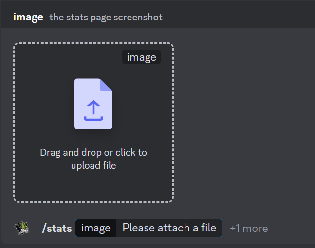 /stats | Upload your build stats, including Hit Chance, Critical Hit Chance, Evasion, and Endurance. |