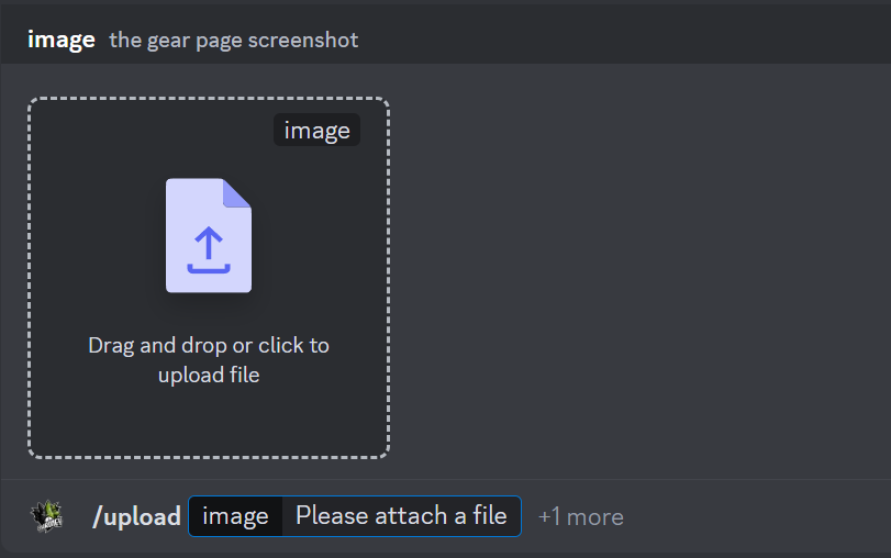 /upload | Upload your gear by attaching a full screenshot of your character’s profile page. |